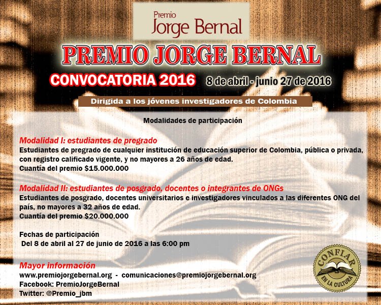 Acompáñenos en la entrega de reconocimiento a los ganadores de la convocatoria 2015, Christian Parra y Mayra Natalia Parra, el próximo jueves 10 de marzo a las 5:30 pm…