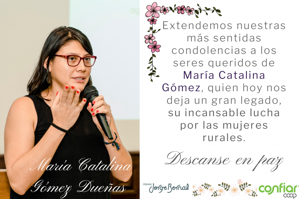 Expresamos nuestras más sentidas condolencias a familiares, compañeras, amigas y amigos de María Catalina Gómez. Ganadora de la octava versión del Premio Jorge Bernal, en…