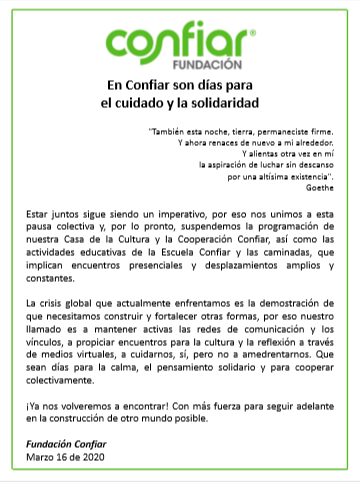 En Confiar nos unimos a las medidas adoptadas por el Gobierno Nacional en consonancia con las recomendaciones de la Organización Mundial de la Salud (OMS),…