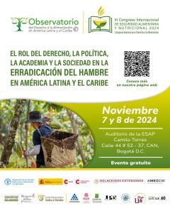 III Congreso Internacional de Seguridad Alimentaria y Nutricional y I Congreso Nacional del Derecho a la Alimentación: El Rol del Derecho, la Política, la Academia y la Sociedad Civil en la Erradicación del Hambre en la Región en memoria de Mauricio Betancourt, investigador social, destacado por su trabajo en un modelo territorial bajo el principio de la comida cerca de la mesa.