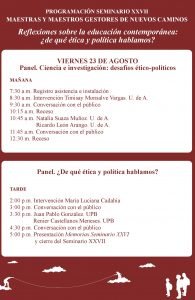 El viernes 23 de agosto durante todo el día se llevará a cabo el seminario xxvii de la Alianza Maestras y Maestros Gestores de Nuevos Caminos, en el Auditorio del Parque Biblioteca de Belén, en la ciudad de Medellín.